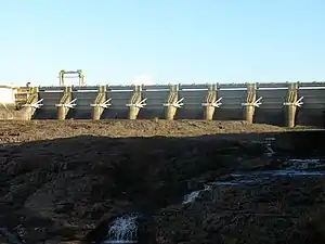 Введена в експлуатацію у 1958 році перша черга станції з двома гідроагрегатами малої потужності не створювала водосховища, а дві її дамби забезпечували подачу ресурсу із рівня до 418 метрів НРМ. Втім, вже за кілька років Паранаїбу перекрили повноцінною греблею. Лівобережну частину долини займає кам’яно-накидна ділянка із глиняним ядром висотою 26 метрів та довжиною біля 1 км, а далі тягнеться бетонна частина висотою 22 метри та довжиною понад 2 км. Ця споруда потребувала 500 тис м3 бетону та 2,2 млн м3 породи. Вона утримує водосховище з площею поверхні 74,4 км2 та об’ємом 460 млн м3 (корисний об’єм 219 млн м3), в якому рівень поверхні підняли до 430,5 метра НРМ.
