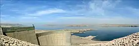 У межах проекту річку перекрили кам'яно-накидною греблею із глиняним ядром висотою 127 метрів, довжиною 3030 метрів та шириною від 12 (по гребеню) до 1100 (по основі) метрів. На час будівництва воду відвели за допомогою тунелю довжиною 0,8 км. Гребля утворила витягнуте по долині Керхе на 60 км водосховище з площею поверхні 162,5 км2 та об’ємом 5,6 млрд м3.