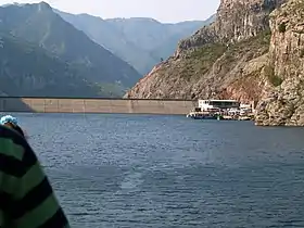 Спорудження греблі велось з 1979 року, а першу електроенергію звідси отримали у 1985-му. Дрин перегороджено кам'яно-накидною греблею із максимальною висотою 133 метри, що забезпечує напір 96 метрів. Створене греблею штучне озеро, витягнуте у гірській ущелині, має площу поверхні 12 км2 та об'єм 450 м3.