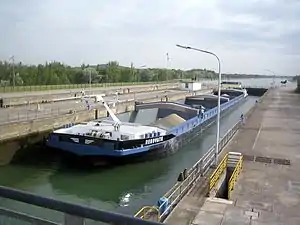 У місці спорудження гідрокомплексу Рейн розділено на дві протоки. Праву, прилеглу до німецького берегу, перекриває допоміжна гребля. Ліва в свою чергу також розділяється невеликим острівцем на дві, що містять машинний зал руслового типу та два судноплавні шлюзи. Останні мають довжину у 185 метрів та ширину 23 та 12 метрів.[1]