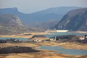Для спорудження станції річку перекрили кам'яно-накидною греблею з бетонним облицюванням висотою 100 метрів, довжиною 230 метрів та шириною по гребеню 6 метрів. На її спорудження пішло 1,45 млн м3 матеріалу, при цьому площа облицювання становила 19 тис. м2. Це утворило водосховище площею поверхні 14,74 км2 та об'ємом до 515 млн м3 (корисний об'єм 466 млн м3), для якого нормальним є коливання рівня між позначками 536 та 595 метрів над рівнем моря.