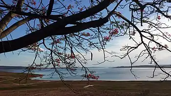 Річку перекрили земляною греблею висотою 75 метрів та довжиною 2700 метрів. Ця споруда утворює велике водосховище з площею поверхні 1040 км2, котре має об’єм 21 млрд м3 (корисний об'єм 15,3 млрд м3) та припустиме коливання рівня між позначками 549,2 та 575,2 метри НРМ. Разом з водоймою розташованої нижче станції Собрадіньо воно здійснює внутрішньорічне регулювання потоку, необхідне для роботи розташованих далі по течії найбільш потужних ГЕС каскаду.