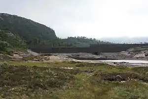- перетинає долину Forreelva, отримуючи тут поповнення з двох водозаборів (можливо відзначити, що верхів’я Forreelva вже були охоплені другим за розміром водосховищем країни Blasjoen, котре працює на верхній ступінь гідровузла ГЕС Saurdal);
