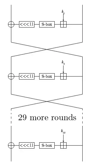 Після виконання всіх 32 раундів алгоритму, блоки A33 і B33 склеюються (зверніть увагу, що старшим бітом стає 33 , а молодшим — B33 ) — результат є результат роботи алгоритму.