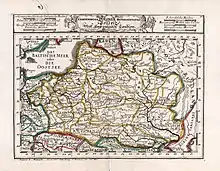 Карта «Compendiosa Poloniae Repraesentatio Polen». Як і на попередній карті Надніпров’я (Правобережне і Лівобережне) позначене як «UKRAYNE COSACKISCHE LANDER» (Україна козацька земля)[1].