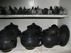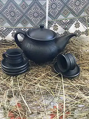Гончарні вироби — філіжанки, мисочки, джезви, глечики, вази, макітри, чанашниці, підсвічники, вазони — традиційно чорного і темно-сріблясного кольору.