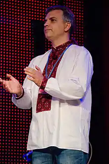 ![]() Олександр Гаврош на презентації в «Домі книги» в Тернополі, березень 2017 | ||||