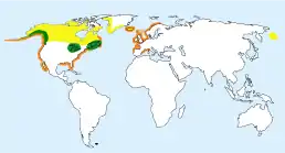 Ареал: північна частина Північної Америки та західне узбережжя Європи.