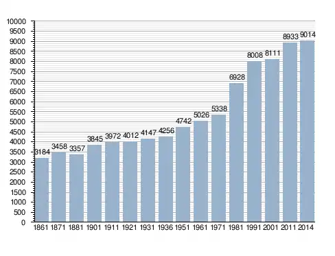 Станом на 31 грудня 2014 року в муніципалітеті офіційно проживав 601 іноземець з 53 країн, серед них 114 громадян країн Євросоюзу та 56 громадян України.[4]