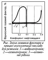 На Г.ф. впливає також режим роботи покладу. При водонапірному режимі Г.ф. не змінюється протягом усього періоду розробки покладу, при газонапірному режимі в останній стадії розробки швидко зростає, при режимі газованої рідини спочатку швидко підвищується, потім у міру виснаження покладу, інтенсивно падає. Значення Г.ф. можуть досягати дек. тис. м3 газу на 1 т нафти.