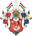 На гербі знаходиться турецька голова, проштрикнута шаблею. Це з часів боротьби угорців проти турків, коли угорці були під владою Османської імперії.