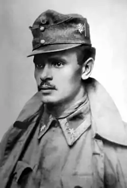 ![]() Степан Гайдучок у формі військового лікаря 4-ї Золочівської бригади Української Галицької Армії. 1919 р. | |