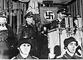 Гудеріан (крайній ліворуч) під час промови Генріха Гіммлера до фольсксштурму (жовтень 1944).