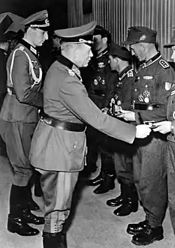 Гудеріан вручає нагрудний знак ближнього бою в золоті (березень 1945).
