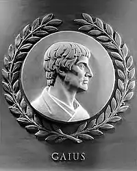 - Коментарі до інституцій цивільного права. 161 рік. У 1816 році було знайдено оригінал у Веронській бібліотеці.