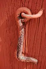 - Дверний гак (за́щіпка) — використовується для як запір для защіплення дверей, вікон, хвірток, кватирок.