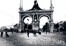 Для відвідин Загальної Крайової виставки, головним опікуном якої він був, цісар Австро-Угорщини Франц Йосип І відвідав Львів. Візит тривав з 11 по 15 вересня 1894 року. Голова держави прибув до Львова залізницею. На головному вокзалі його очікував натовп на чолі з маршалом Галичини графом Людвіком Водзицьким. На сучасному перехресті вулиць Городоцької та Чернівецької Залізниця Карла Людвіга спорудила тріумфальну арку за проєктом архітектора Карела Боубліка. Посередині її увінчувала цісарська корона та погруддя цісаря, з боків — герби міста та краю. Поблизу арки стояла трибуна, де імператора зустрів бургомістр. Він вручив Францові Йосипу позолочений ключ від міста і виголосив промову.