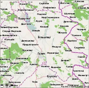 | Калуський район | Тернопільська область (Підгаєцький район, Монастириський район) | |
