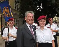 ![]() Президент Австрії Гайнц Фішер з музикантами оркестру | |