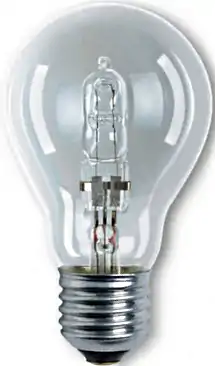 Галогенна лампа — лампа розжарення, в балон якої додано буферний газ: пару галогенів (брому або йоду). Це підвищує тривалість життя лампи до 2000–4000 годин, і дозволяє підвищити температуру спіралі. При цьому робоча температура спіралі становить приблизно 3000 К. Світлова віддача галогенних ламп за масового виробництва, на січень 2012 досягає 15–22 лм/Вт.