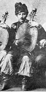 Бандурист О. Гамалія (фрагмент фото на концерті в Ахтирці, 1915)