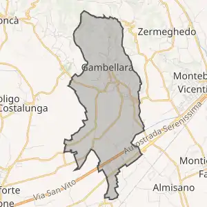 Гамбеллара розташована на відстані[1] близько 410 км на північ від Рима, 80 км на захід від Венеції, 20 км на південний захід від Віченци.