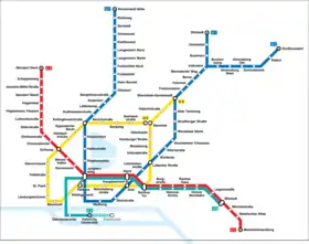 На середину 2010-х мережа складається з ліній U1, U2, U3 і U4, при цьому лінія U1 обслуговує дві різні гілки мережі. Позначення ліній U1 і U2 були введені в 1966, через рік введено позначення U3. Особливістю системи є спільне використання станцій різними лініями.