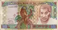 100 Даласі | Папуга Poicephalus senegalus та портрет чоловіка | Тріумфальна арка в Банжулі | |