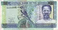 Особливістю дизайну гамбійських банкнот є те, що на відміну від більшості африканських держав, що зображують на своїх грошових знаках політичних діячів та національних героїв, на банкнотах Центрального банку Гамбії присутні зображення птахів.