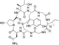 CC[C@H](C)[C@H]1C(=O)NCC(=O)N[C@H]2CS(=O)c3c(c4ccc(cc4[nH]3)O)C[C@@H](C(=O)NCC(=O)N1)NC(=O)[C@@H](NC(=O)[C@@H]5C[C@H](CN5C(=O)[C@@H](NC2=O)CC(=O)N)O)[C@@H](C)[C@H](C)O |