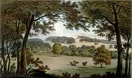 | Йоркширський краєвид до перепланування Рептоном | Йоркширський краєвид після перепланування Рептоном | Рассел-сквер в Лондоні |