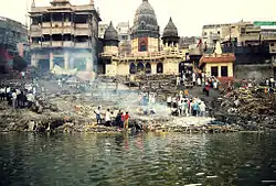 Ганг також є популярним місцем поховання. Оскільки річка є зв'язуючою ланкою між Землею та Небом, вважається, що коли індуси кидають попіл своїх померлих родичів у води цієї річки, вони допомагають їм досягти мокші (спасіння) та потрапити на Небо. Тому кремація в будь-якому місці вздовж річки є бажаною для індусів. Часто люди везуть померлих сюди через всю країну, а на берегах річки постійно горять вогнища, на яких спалюють мерців. Якщо кремація на березі річки неможлива, родичі згодом можуть привезти попіл до Гангу, а деякі компанії пропонують його перевезення навіть з-за кордону та виконують відповідні церемонії розсіювання попелу[27]. Найбідніші індійці, однак, часто вважають вартість дров для кремації, вартість послуг електричних крематоріїв та вартість послуг брахманів, що проводять церемонію, надмірною, через що просто кидають тіла мерців у воду.