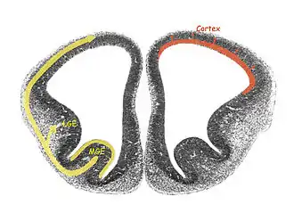 - Letinic K, Zoncu R, Rakic P (June 2002). Origin of GABAergic neurons in the human neocortex. Nature 417 (6889): 645–9. PMID 12050665. doi:10.1038/nature00779.