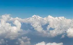 ![]() Гірський масив Ганеш-Гімал, вид з літака. Вершини (зліва направо): безім'яний пік (6250 м), Ганеш II (7118 м), Пабіл (7104 м), Саласунго (7043 м) | ||||