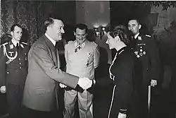 ![]() Ганна Райч у своєму рідному Гіршбергу. Поруч з нею Карл Ганке[Вин. 1], квітень 1941 | |
