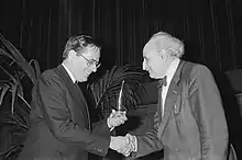 | Аспіранти, докторанти | Willem van Estd[12], Jacques F. Bendersd[13], Hans Duistermaatd[14], Carel Schefferd[15], Arnoud van Rooijd[16], Gerhard Veltkampd[17], Henk J. M. Bosd[17], Jan Willem Nienhuysd[17], Jacob Ponsteind[17], Rudolf Arno Hirschfeldd[17], Gerard Jan Leppinkd[17], Petrus W. H. Lemmensd[17], Ferdinand Douwe Veldkampd[17], Arie Hendrik Boersd[17], Gerard Schellekensd[17], Eduard Johannes van der Waagd[17], Pieter Jacob van Albadad[17], G. J. B. Bremerd[17], Dono Kijned[17], P. M. van Hieled[17], Nicole De Grande-De Kimped[17], W. I. M. Wilsd[17], Adrie Treffersd[17], Tjepke Blanksmad[17], Frederik W. Hogesteegerd[17] і Hendrikus Mattheus de Jongd[17] |