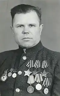 За час війни також був нагороджений орденом Червоної Зірки та медалями.