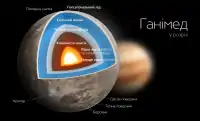 Внутрішня структура Ганімеду також диференційована. У його надрах виділяють порівняно невелике залізне ядро, оточене товстою мантією із силікатів. Над мантією простягається шар м'якого льоду, або океан рідкої води, подібний океану на Європі. Однак поверхня являє собою тверду льодову шкаралупу.