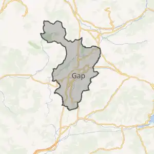 - Розташування муніципалітету Гап на мапі Франції та сусідні муніципалітети