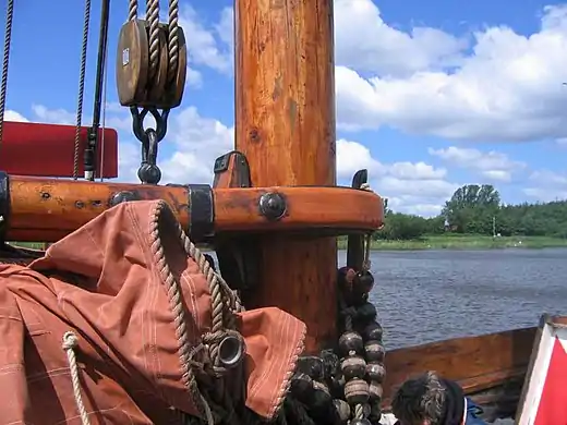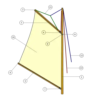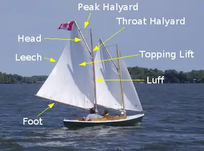 Гафель-гардель (позначений цифрою 13) і дирик-фал (позначений цифрою 12)
