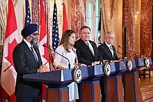 Гарджіт Саджан представляв Канаду на інавгурації Володимира Зеленського в травні 2019 року[30]. Канадський міністр оборони зустрічався з Зеленським і пізніше, на українській бізнес-конференції в Торонто в липні 2019 року, а раніше у 2017 році він разом із Христею Фріланд підтримав продовження канадської військової місії UNIFIER в Україні, чим виткликав невдоволені коментарі Кремля[31][32].