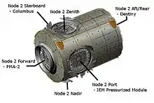Має шість стикувальних портів «Common Berthing Mechanisms CBM»[1]. Діючи як центральний елемент, здійснює обмін даними між приєднаними до нього сегментами і забезпечує їх електроенергією за допомогою чотирьох встановлених на ньому розподільників. Крім того, обладнаний трьома спальними місцями для космонавтів.