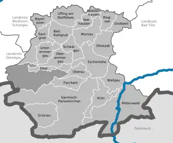 Район складається з 3 торговельних громад (нім. Märkte), 3 об'єднань громад, 1 невключеної території та 19 громад (нім. Gemeinden):