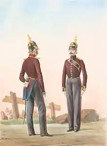- Илл. 538. Обер-офицер и Рядовой Внутренних Гарнизонных батальонов. 1844 // Историческое описание одежды и вооружения российских войск, с рисунками, составленное по высочайшему повелению: в 30 т., в 60 кн / Под ред. А. В. Висковатова. — Paris: Imp. Lemercier, 1861—1862. (рос.)