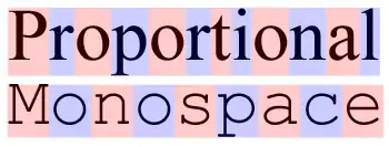 Пропорційний шрифт містить зображення символів різної ширини, а моноширинний (не-пропорційний або фіксованої ширини) шрифт використовує одну стандартну ширину для всіх символів.