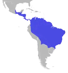 ![]() Рідко зустрічається в межах свого ареалу, який простягається від Мексики до Бразилії й півночі Аргентини | ||||||||||||||||