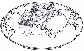 Маккіндер на карті світу виділив Європу й Азію, назвавши їх Світовим островом (англ. World-Island). У його центрі знаходиться Гартленд, він складається зі Східної Європи, Росії і Центральної Азії, що захищений внутрішнім півмісяцем — Сибір, Гімалаї, пустеля Гобі, Тибет[6].