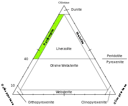 Петрохімічна діаграма для перидотитів. Зелене поле — гарцбургіти.