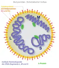 ![]() Схема будови типового буньявірусу, яким є Febrigenes pappatasii | ||||||||||||
