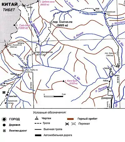 Карта високогір'я від Лінгжі до Лая і Гаса